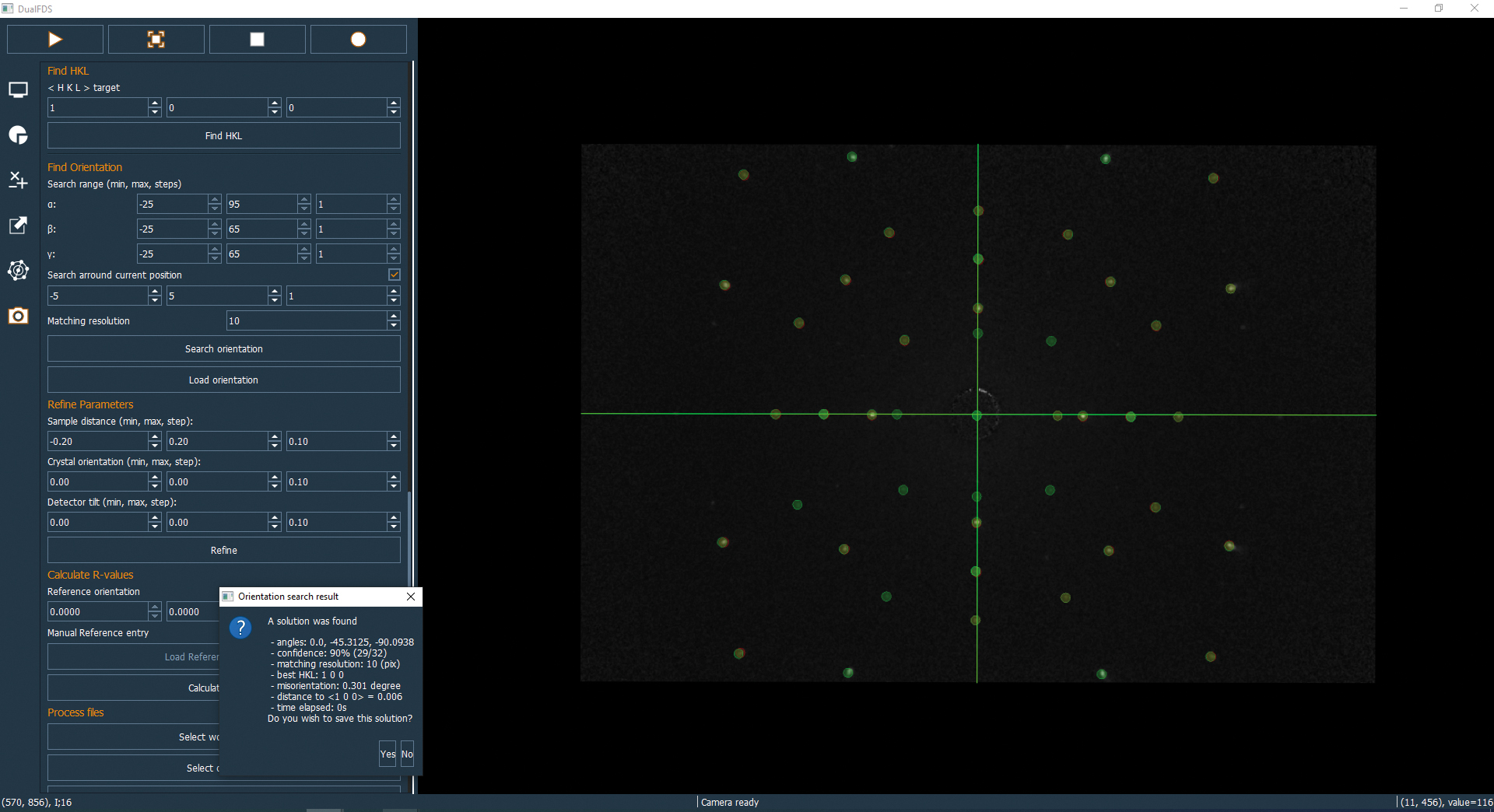 and calculates spot position against reference crystal
