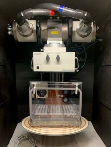 Designed for use with the programmable shelf, the planetary turntable can hold and rotate multiple cell plates or three pie cages, for a total specimen count of up to thirty-three (33) mice.
